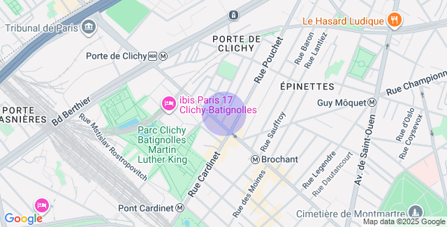 • 7 min de Pont Cardinet (lignes 14 et L) et de Porte de Clichy (lignes 13, 14 et RER C)