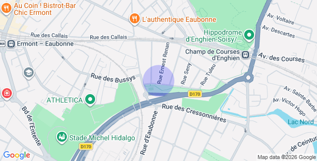 L’environnement immédiat offre la proximité des commerces de quartier, des établissements scolaires, des services du quotidien et des espaces verts, notamment autour de l’hippodrome d’Enghien-les-Bains. Le centre-ville d’Enghien-les-Bains, son lac, ses restaurants et ses équipements sont accessibles rapidement.